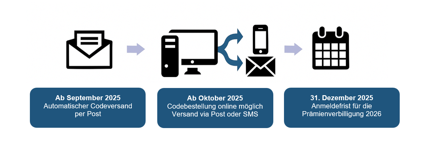 Sie müssen keinen Code bestellen. Solange Sie Sozialhilfe oder Ergänzungsleistungen beziehen, haben Sie Anspruch auf Prämienverbilligung. Ihre Krankenversicherung wird von uns direkt informiert.