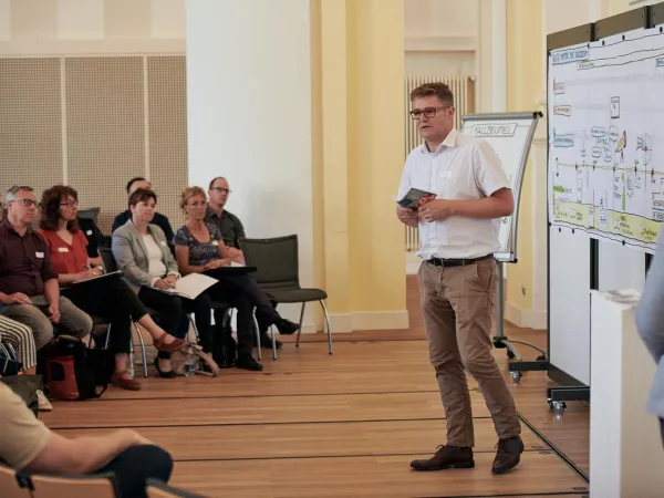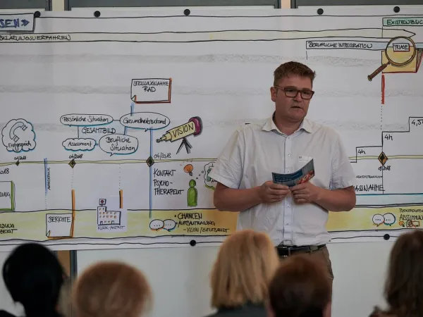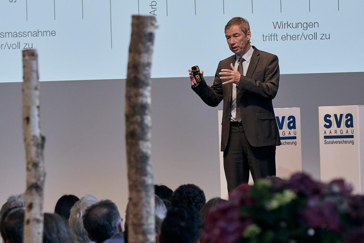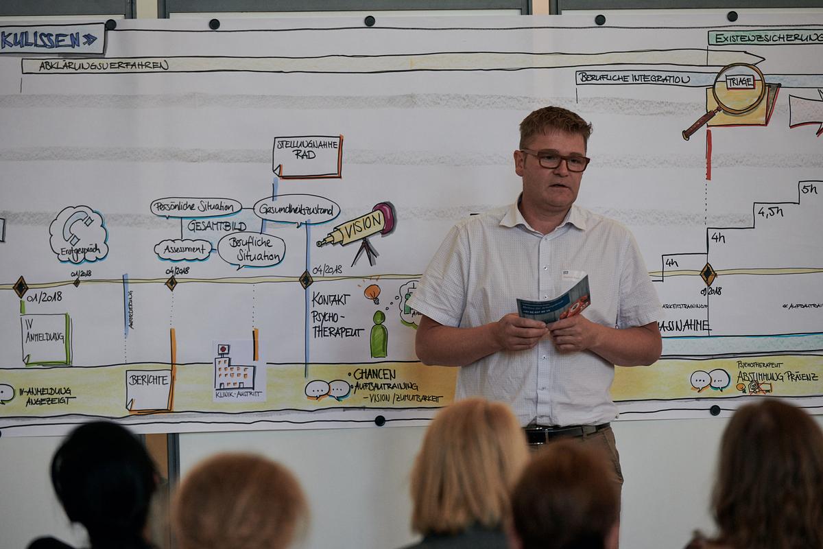 Dr. phil. Niklas Bär präsentierte die Erkenntnisse aus einer umfassenden Studie, die aufzeigt, wie die Versicherten selbst die Eingliederungsmassnahmen der Invalidenversicherung erleben. Zudem wurde in drei Workshops ein vertiefter Einblick in die Arbeit der Invalidenversicherung gewährt.